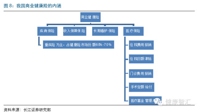 在我國的醫療保險支付格局中,商業保險公司賠付僅占約1.4%,我們參考美國醫療保障覆蓋人群中,商業健康險覆蓋了約63.46%人群、占比醫療費用支出約35%,美國上市醫院來自商業保險的收入約55.2%。可以預見,我國商業健康險亟待發力,面臨十倍以上的成長空間。
