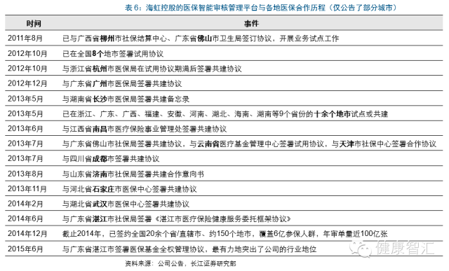 PBM系統的控費審核僅僅是海虹控股的叩金石,由控費向掌握數據資源、醫療落地服務資源,進而向綜合醫療服務延伸才是其核心宗旨。2015年6月11日,海虹控股公告與湛江簽署《湛江市基本醫療保險支付審核服務委托協議》,全權委托海虹作為專業服務機構進行湛江市醫保基金審核、支付、評價以及參保人服務等,標志著海虹PBM業務從“控費”升級為“醫保基金全權管理”,是屬國內首創,體現出公司強大的頂層資源整合能力,有望在其他核心合作城市大范圍異地復制,具有劃時代意義!