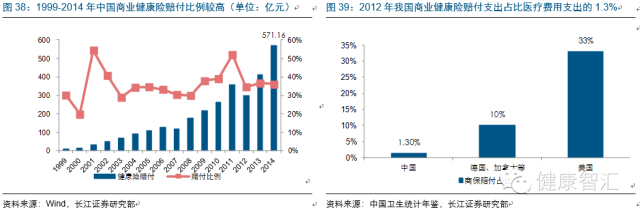因此,我國商業健康險一直是平穩增長,未能迎來真正的爆發,較之美國等發達國家,我國健康險在醫療衛生費用總支出中面臨十倍以上增長空間,且我國商業健康險歷年平均賠付比例接近50%(60%是一般性盈虧平衡線),這還主要是針對健康人群市場,倘若商業保險公司未來針對患病人群,極有可能面臨嚴重虧損。
