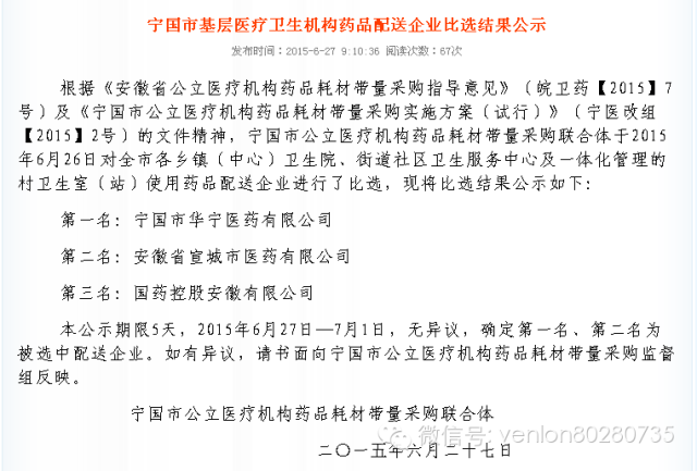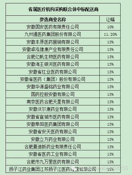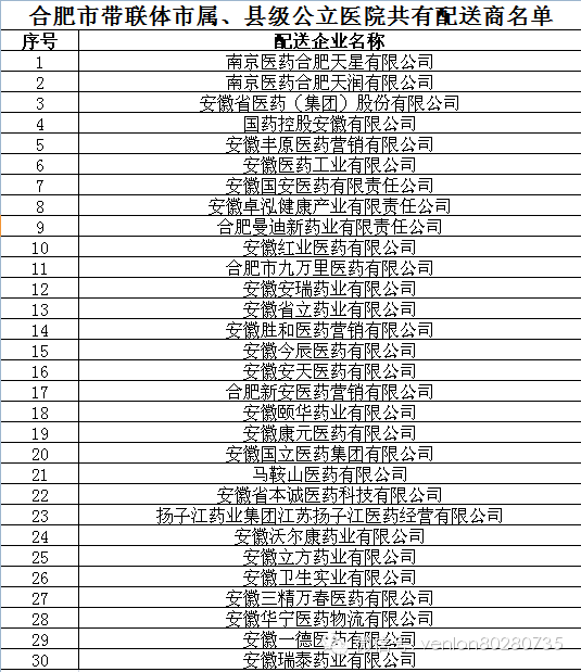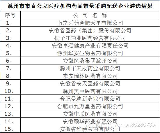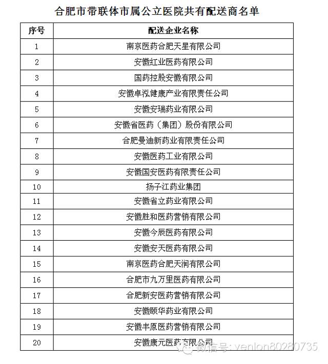 滁州市公立醫(yī)療機(jī)構(gòu)配送商