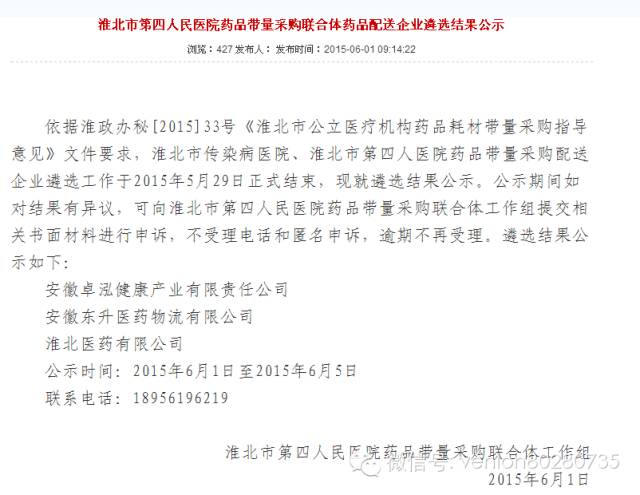 淮北市三區(qū)公立醫(yī)療機(jī)構(gòu)配送商