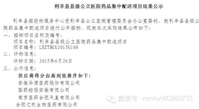 利辛縣公立醫(yī)療機(jī)構(gòu)配送商