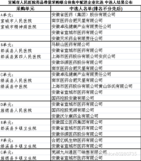 涇縣公立醫(yī)療機(jī)構(gòu)配送商